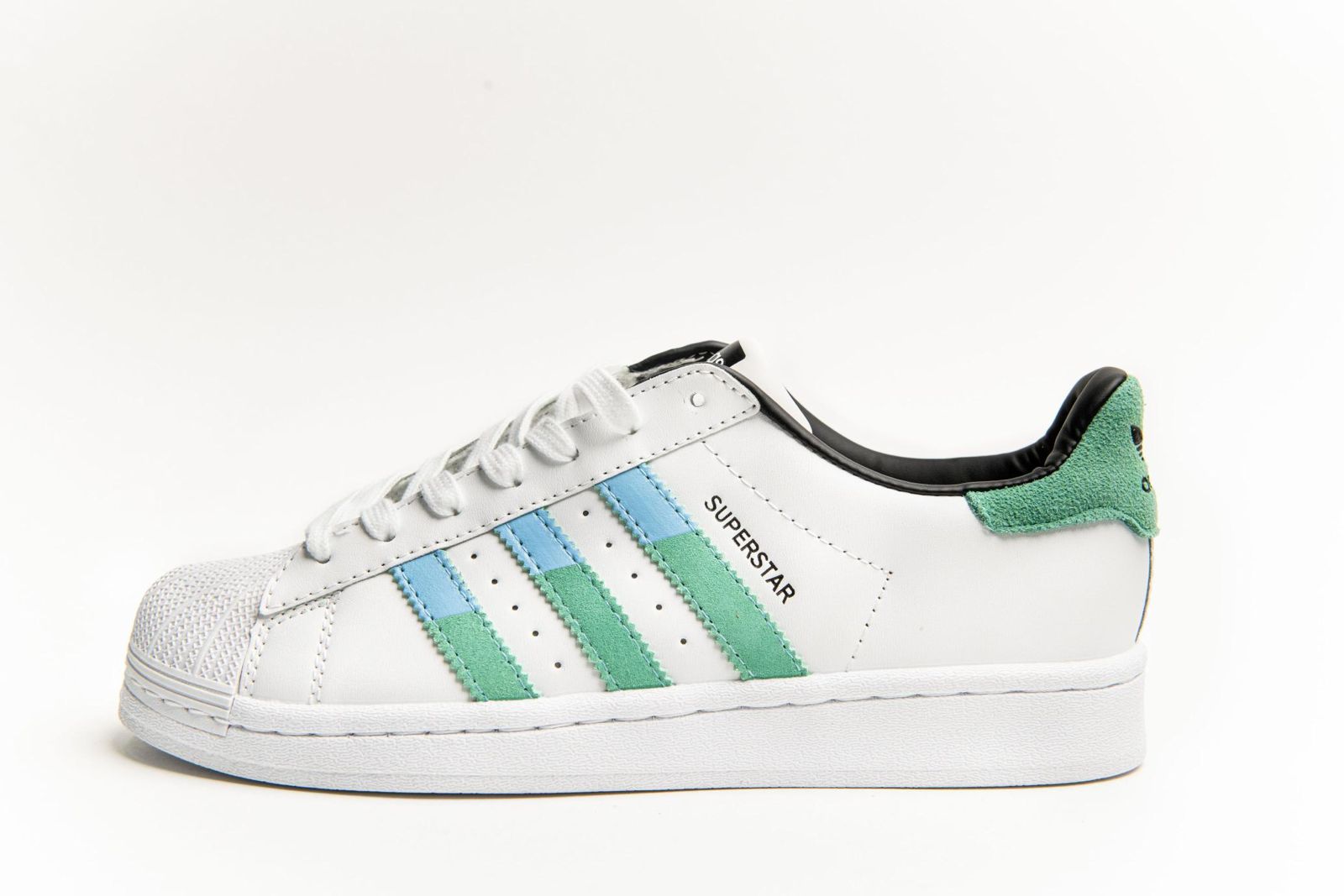 Adidas Superstar თეთრი მწვანე ზოლებით